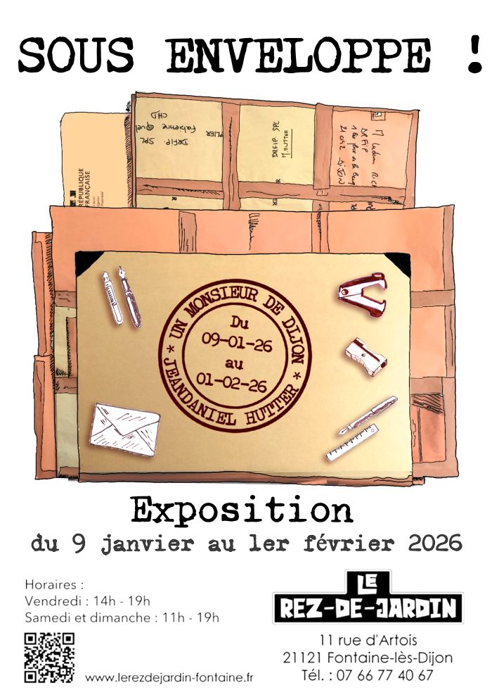 Comment transformer le travail de bureau en œuvre artistique ? Le fontenois Jean-Daniel Hutter (alias « un monsieur de Dijon ») s’y prête volontiers : un bon coup de crayon, un peu d’humour, un peu de rêve, une imprimante, des enveloppes en papier kraft usagées …Et le tour est joué ! Venez frapper à la porte du bureau !